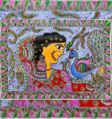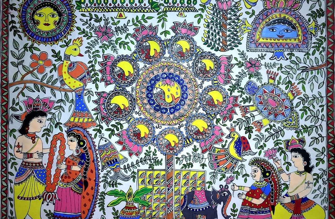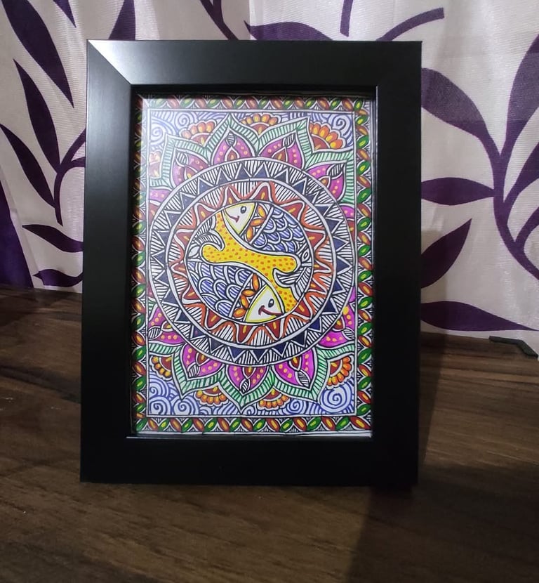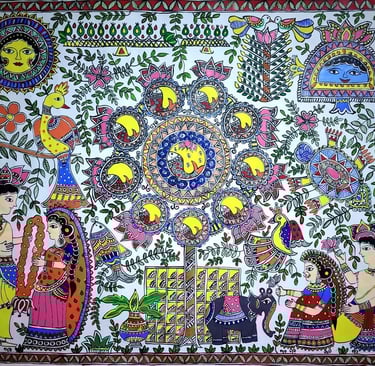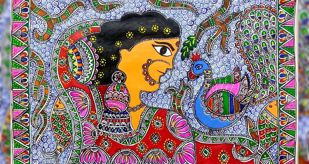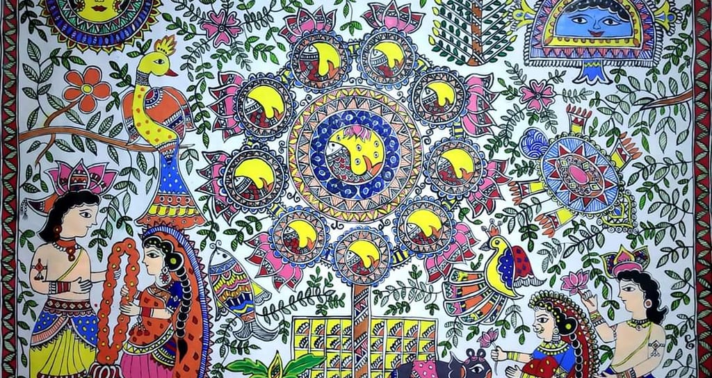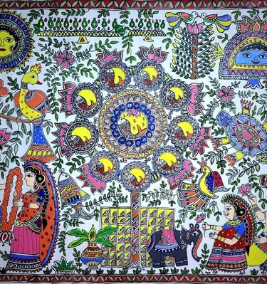 A vibrant collection of Handmade Mithila paintings.